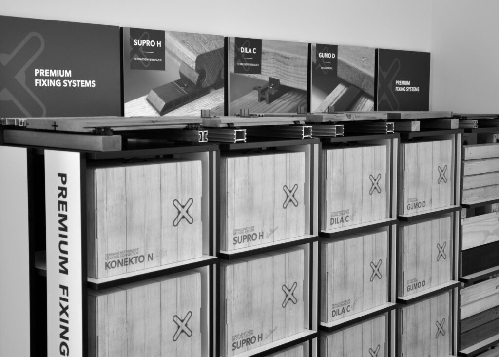 The VIDO system display stands are designed to be space-saving, with a compact footprint of just 0.25 m² (0.5 x 0.5 m). These versatile system displays can be positioned individually or arranged in a row to accommodate multiple product systems.