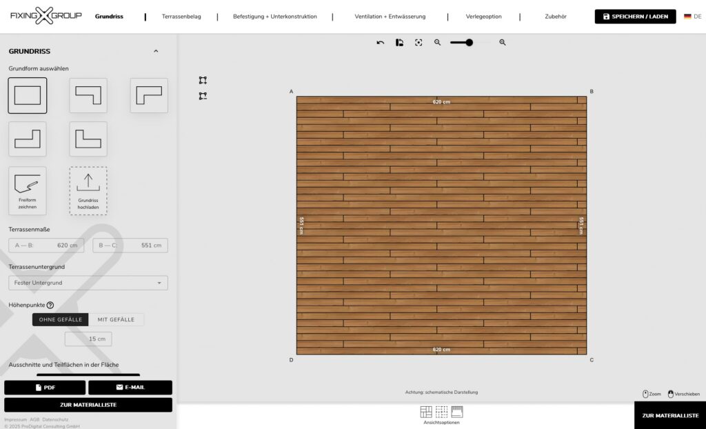 Unser Terrassenkonfigurator steht Ihnen uneingeschränkt und ohne Registrierungspflicht zur Verfügung. Selbst anspruchsvolle Terrassenprojekte lassen sich damit effizient und mit minimalem Planungsaufwand konfigurieren.